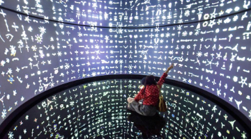 7月12日,观众在“棋人弈事:古代围棋文化”特展中体验互动式AI围棋游戏。新华社记者 李悦 摄