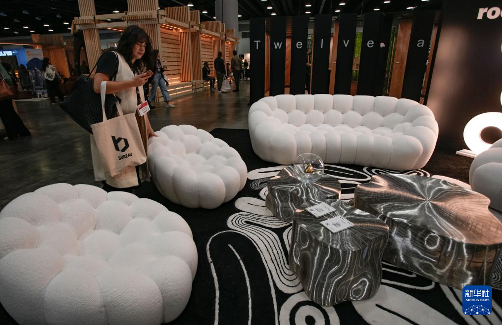 9月26日,在加拿大温哥华2025年度室内设计展上,人们参观体验家具设计作品。