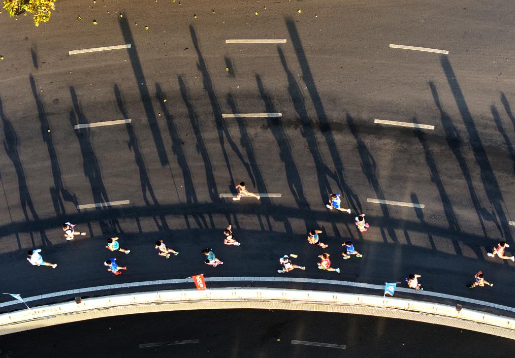 11月16日,参赛选手在比赛中起跑(无人机照片)。新华社记者 李嘉南 摄