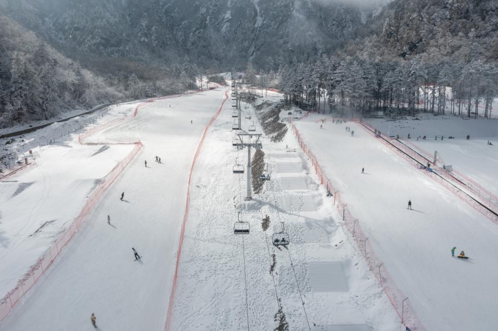 1月5日,以“激情冰雪 活力四川”为主题的第十二届全国大众冰雪季(四川分会场)暨四川省第八届全民健身冰雪季活动在阿坝州理县毕棚沟滑雪场启幕。新华社记者 江宏景 摄