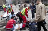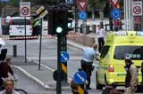 挪威警察從爆炸現(xiàn)場抬出受傷人員