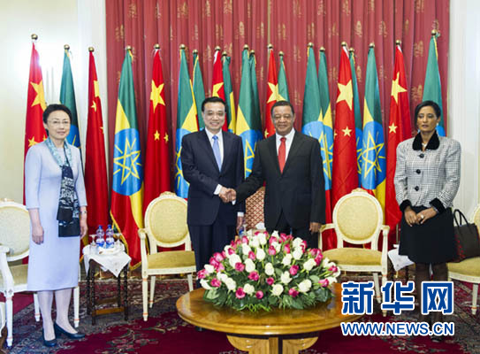 國務(wù)院總理李克強(qiáng)當(dāng)?shù)貢r(shí)間6日上午在亞的斯亞貝巴國家宮會(huì)見埃塞俄比亞總統(tǒng)穆拉圖。