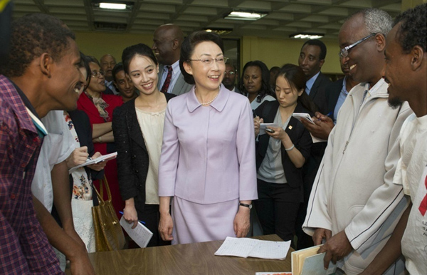 ????新華網(wǎng)北京5月6日電 據(jù)新華社“新國際”微博報道,李克強(qiáng)總理夫人程虹5日在埃塞俄比亞總理夫人羅曼·塔斯法耶的陪同下參觀了亞的斯亞貝巴大學(xué),觀摩漢語授課,與學(xué)生們交流,觀看學(xué)生們的中國文化才藝展示,還捐贈了書籍、計算機(jī)等物品。程虹說,你們是文化的紐帶,感謝你們對中國人民的情誼。你們對中國文化的熱愛感動了我,也會感動中國人民。
