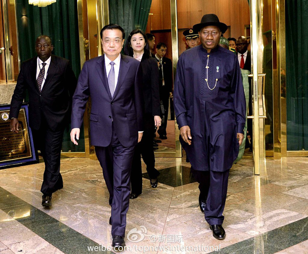 新華網(wǎng)北京5月8日電 據(jù)新華社“新國(guó)際”微博報(bào)道,李克強(qiáng)7日與尼日利亞總統(tǒng)喬納森會(huì)談。喬納森感謝李克強(qiáng)在尼安全形勢(shì)嚴(yán)峻的情況下如期到訪,是患難見真情。李克強(qiáng)表示中方將對(duì)尼提供各種支持和幫助,同時(shí)希望尼方切實(shí)加強(qiáng)對(duì)在尼中國(guó)公民的保護(hù)。目前中國(guó)在尼有6.5萬人,是我在非人員最多的國(guó)家之一。