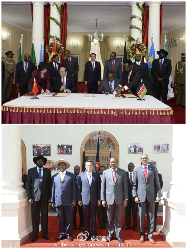 ??? 新華網(wǎng)北京5月11日電? 據(jù)新華社“新國(guó)際”微博報(bào)道,李克強(qiáng)總理、肯雅塔總統(tǒng)11日和東非其他五國(guó)總統(tǒng)或外長(zhǎng)共同見(jiàn)證了中肯蒙巴薩-內(nèi)羅畢鐵路相關(guān)合作協(xié)議的簽署。該鐵路是肯尼亞百年來(lái)建設(shè)的首條鐵路,將把中國(guó)的資金、技術(shù)、標(biāo)準(zhǔn)、裝備制造和管理經(jīng)驗(yàn)帶入非洲,為李克強(qiáng)此訪(fǎng)倡議的非洲“三大網(wǎng)絡(luò)”中的鐵路網(wǎng)建設(shè)再添動(dòng)力。