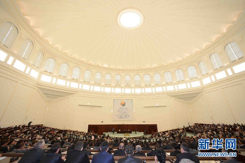????6月6日,在烏茲別克斯坦首都塔什干國際會議宮,會議現(xiàn)場。(沙達提 攝)
