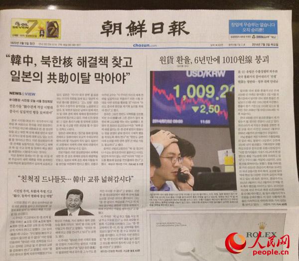 ??? 韓國《朝鮮日?qǐng)?bào)》在頭版顯著位置刊發(fā)習(xí)近平主席署名文章《中韓自古好鄰居 兩國友好風(fēng)好正揚(yáng)帆》 金慧廷 攝