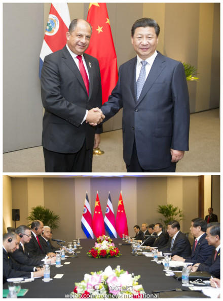 ??? 新華網(wǎng)北京7月17日電 據(jù)新華社“新國(guó)際”微博報(bào)道,習(xí)近平主席16日會(huì)見哥斯達(dá)黎加總統(tǒng)索利斯時(shí)說,中哥關(guān)系正如一棵茁壯成長(zhǎng)的美洲象耳樹。中方愿繼續(xù)同哥方一道,把政治互信的根扎深,把互利合作的干養(yǎng)壯,使人文交流的葉繁茂,使中哥關(guān)系這棵大樹果實(shí)累累。(攝影:謝環(huán)馳)?