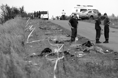一些記者19日看到民間武裝人員把裝有遺體的袋子裝入卡車(chē),隨后運(yùn)離墜機(jī)現(xiàn)場(chǎng)。截至昨天,全部遺體都已從現(xiàn)場(chǎng)被運(yùn)走,用于標(biāo)記遺體位置的系著白布的小木棍不見(jiàn)蹤影,而緊急情況應(yīng)對(duì)人員繼續(xù)在現(xiàn)場(chǎng)搜集殘骸。