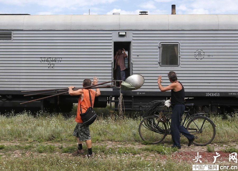 當(dāng)?shù)貢r間2014年7月20日,烏克蘭頓涅茨克Torez,馬航墜機(jī)遇難乘客遺體被裝上列車?yán)洳剀噹麑⒈贿\(yùn)走。載有部分遺體的火車從距空難現(xiàn)場不遠(yuǎn)的烏克蘭托列茲市出發(fā),前往頓涅茨克市?;疖囯x站前,身處空難現(xiàn)場的歐洲安全與合作組織(歐安組織)代表檢查了運(yùn)載遺體的5節(jié)冷藏車廂。