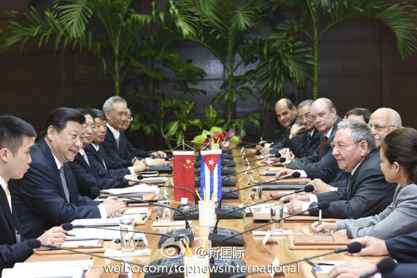 ??? 新華網(wǎng)北京7月23日電 據(jù)新華社“新國際”微博報(bào)道,習(xí)近平22日同古巴國務(wù)委員會主席兼部長會議主席勞爾·卡斯特羅會談時(shí),對發(fā)展中古關(guān)系提出3個(gè)“堅(jiān)定不移”:堅(jiān)定不移深化肝膽相照的友誼,堅(jiān)定不移開展互利共贏的合作,堅(jiān)定不移做改革發(fā)展的伙伴。(李學(xué)仁攝)