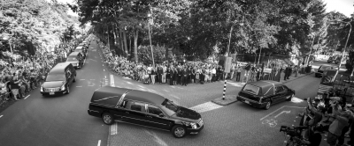 7月23日,護(hù)送馬航MH17航班遇難者遺體的汽車經(jīng)過大街,荷蘭民眾街頭目送并寄托哀思。圖/CFP
