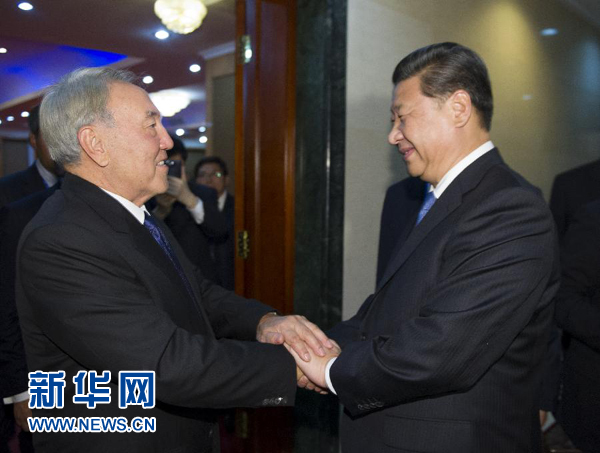 習(xí)近平指出,這是我們今年第四次見面。中哈保持密切高層交往,充分體現(xiàn)了中哈全面戰(zhàn)略伙伴關(guān)系的高水平和特殊性,對指導(dǎo)兩國關(guān)系發(fā)展非常重要。今年5月你對中國進(jìn)行國事訪問并出席亞洲相互協(xié)作與信任措施會議第四次峰會,我們當(dāng)時達(dá)成的各項共識正得到有效落實。你關(guān)心的擴(kuò)大哈方農(nóng)產(chǎn)品和礦產(chǎn)資源對華出口問題,我已責(zé)成中方有關(guān)部門研究并正在積極解決。