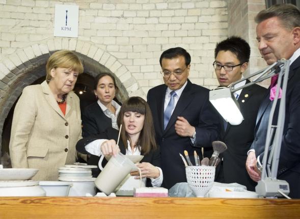位于柏林市中心的皇家瓷器廠,是一家有著260余年悠久歷史的手工制瓷工廠。在共同出席中德經(jīng)濟技術(shù)合作論壇后,默克爾特地邀請克強總理一起來到這里參觀,并共進(jìn)小范圍晚宴。