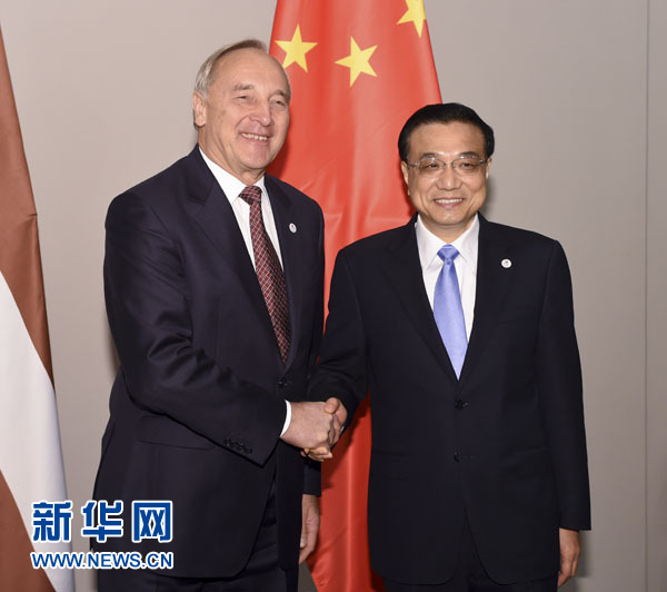 ??? 10月17日,中國國務院總理李克強在意大利米蘭會見拉脫維亞總統(tǒng)貝爾津什。新華社記者李學仁攝