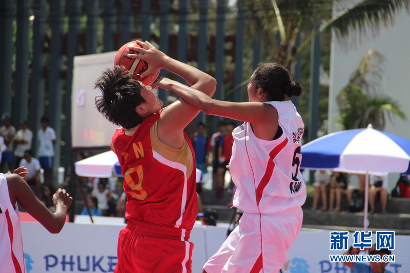 ??? 11月16日,中國(guó)沙灘籃球運(yùn)動(dòng)員安靜(左)在比賽中。中國(guó)體育代表團(tuán)16日在泰國(guó)普吉舉行的第四屆亞洲沙灘運(yùn)動(dòng)會(huì)上勇奪2枚金牌和2枚銅牌。當(dāng)天比賽全部結(jié)束時(shí),中國(guó)隊(duì)以3金2銀5銅的成績(jī)暫列獎(jiǎng)牌榜第五。新華社發(fā)(塔納攝)
