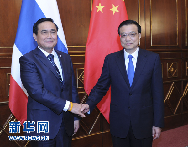 ????時(shí)針撥回10月16日,正在米蘭出席第十屆亞歐首腦會(huì)議的克強(qiáng)總理會(huì)見了同來參會(huì)的巴育。這是繼泰國政局變動(dòng)、中泰鐵路合作一度被擱置后兩國總理的首次會(huì)面。