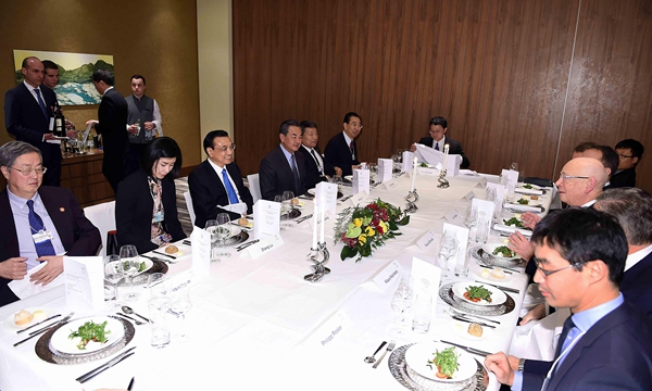 (施瓦布專門設(shè)宴招待克強(qiáng)總理。攝影:李濤)