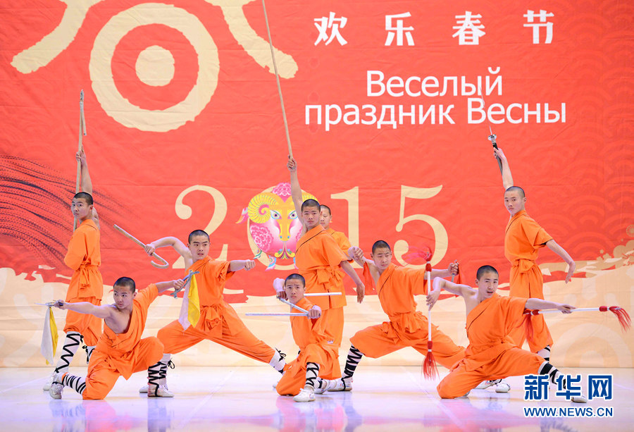????新華網(wǎng)塔什干2月6日電(記者 沙達(dá)提)2月4日晚,在烏茲別克斯坦首都塔什干突厥宮,藝術(shù)家在表演中國(guó)武術(shù)。由中國(guó)文化部、中國(guó)駐烏茲別克斯坦大使館、烏外交部、烏文化體育部和塔什干市政府共同聯(lián)辦、河南省文化廳攜鄭州歌舞劇院、登封市少林塔溝武術(shù)學(xué)校承辦的2015“歡樂(lè)春節(jié)”中亞行演出4日至5日在塔什干突厥宮分別為烏茲別克斯坦政府官員、各界友好人士、駐烏使節(jié)和旅烏各族華僑華人、維吾爾文化中心、東干文化中心及中資企業(yè)、教師和留學(xué)生代表近1600余人獻(xiàn)上充滿濃郁中國(guó)特色的文化藝術(shù)盛宴。