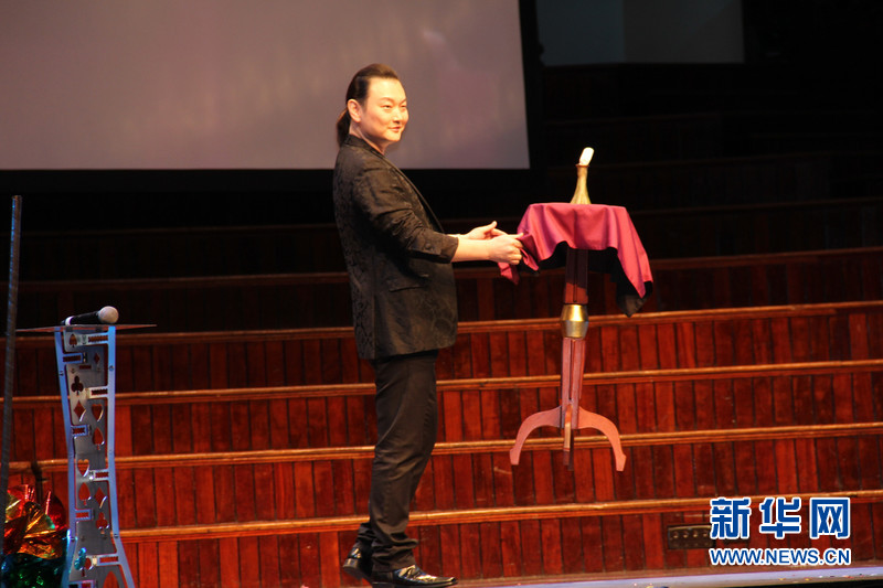 ??????? 2月25日,由中國(guó)國(guó)務(wù)院僑辦和中國(guó)海外交流協(xié)會(huì)聯(lián)合主辦的“文化中國(guó)·四海同春”在悉尼舉辦大洋洲團(tuán)的首場(chǎng)演出,歌手成方圓、中國(guó)好聲音學(xué)員李維、周深等國(guó)內(nèi)知名表演者和中澳藝術(shù)團(tuán)體為當(dāng)?shù)厝A僑華人送來(lái)新春祝福。圖為中國(guó)雜技團(tuán)著名青年魔術(shù)師李寧表演魔術(shù)。新華社記者趙小娜攝