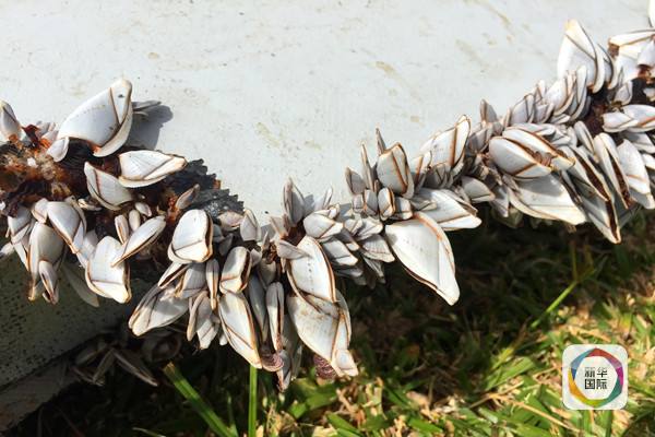 ????就是上面這塊長兩米,外形與波音777型客機(jī)襟副翼相似的殘骸。殘骸上面還附著有不少軟體動物。