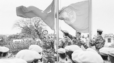2014年12月8日早上,中國第十三批赴南蘇丹維和部隊(duì)隆重舉行升旗儀式。資料圖片