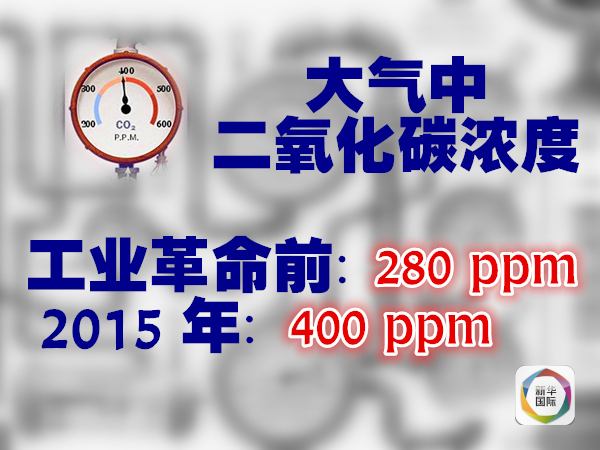 世界氣象組織數(shù)據(jù)顯示,工業(yè)革命前,大氣中二氧化碳含量約為280ppm(ppm是百萬分率,1ppm為百萬分之一);而到2015年,大氣年均二氧化碳濃度已經(jīng)達(dá)到400ppm上下。
