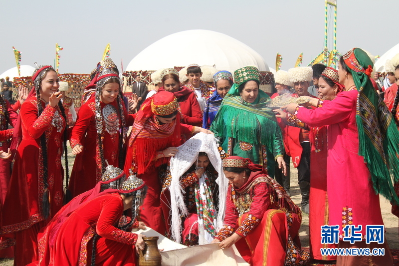 3月21日,在土庫(kù)曼斯坦首都阿什哈巴德,現(xiàn)場(chǎng)上演結(jié)婚場(chǎng)面。新華社記者盧敬利 攝