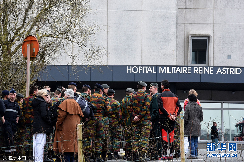 ??? 當?shù)貢r間2016年3月24日,比利時布魯塞爾, Koningin Astrid-Reine Astrid 軍事醫(yī)院發(fā)生天然氣泄漏,民眾緊急疏散,一部分在日前布魯塞爾恐襲中受傷的民眾在此接受治療。圖片來源:視覺中國