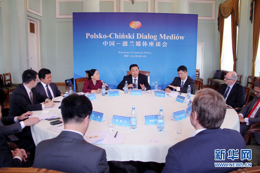 ??? 6月14日,參加中國—波蘭媒體座談會的中波媒體代表正在熱烈交流討論。當天,由中國國務院新聞辦公室主辦的中國—波蘭媒體座談會在波蘭首都華沙召開,包括新華社、中央電視臺、中國國際廣播電臺、中國日報社、新華網(wǎng)、波蘭通訊社、波蘭國家電視臺、波蘭《共和國報》、波蘭廣播電臺和波蘭亞洲研究中心等中波媒體代表參加了此次座談會,雙方代表就中波兩國媒體合作和“一帶一路”建設等議題進行了熱烈的交流和討論。新華網(wǎng)記者 陳序 攝