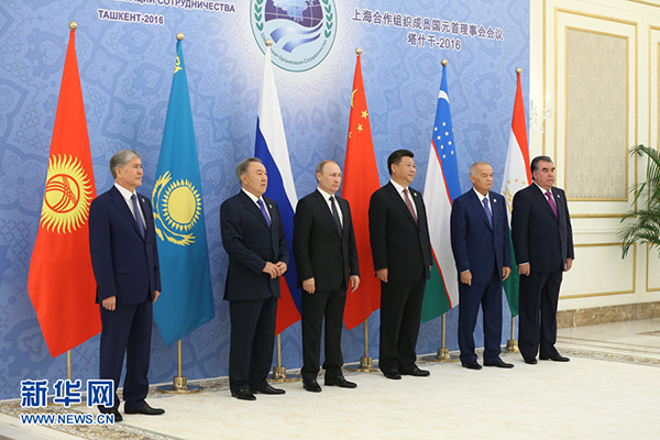 新華社塔什干6月24日電(記者陳贄 霍小光 駱珺)24日,上海合作組織成員國(guó)元首理事會(huì)第十六次會(huì)議在烏茲別克斯坦塔什干舉行。國(guó)家主席習(xí)近平同哈薩克斯坦總統(tǒng)納扎爾巴耶夫、吉爾吉斯斯坦總統(tǒng)阿坦巴耶夫、俄羅斯總統(tǒng)普京、塔吉克斯坦總統(tǒng)拉赫蒙、烏茲別克斯坦總統(tǒng)卡里莫夫出席會(huì)議。習(xí)近平在會(huì)上發(fā)表重要講話,強(qiáng)調(diào)要堅(jiān)定遵循上海合作組織根本宗旨和原則,牢牢把握發(fā)展大方向,動(dòng)態(tài)調(diào)整各領(lǐng)域合作方略,確保本組織生機(jī)活力。