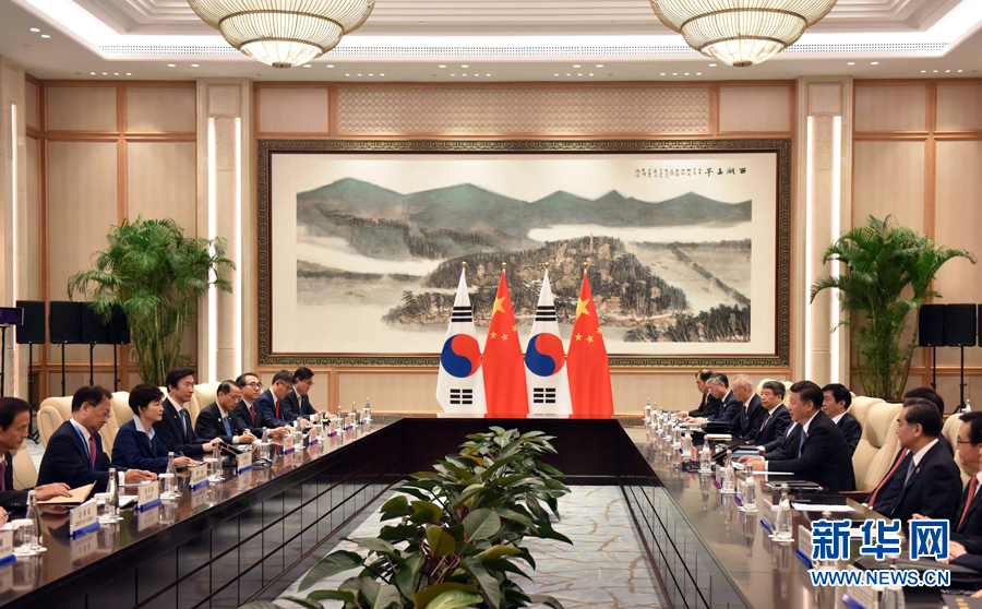 兩國元首還就朝鮮半島形勢交換了看法。習近平指出,中方始終致力于實現(xiàn)半島無核化目標,致力于維護半島和平穩(wěn)定。半島問題最終還是要通過對話協(xié)商加以解決。我們應該堅持六方會談平臺,通過全面均衡解決各方關切,爭取標本兼治,實現(xiàn)半島長治久安。我們反對美國在韓國部署“薩德”反導系統(tǒng)。這個問題處理不好,不利于地區(qū)戰(zhàn)略穩(wěn)定,會加劇各方矛盾。樸槿惠表示愿就有關問題同中方保持密切溝通。