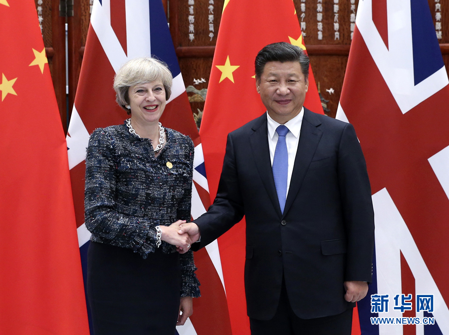 9月5日,國家主席習近平在杭州會見來華出席二十國集團領導人峰會的英國首相特雷莎·梅。 新華社記者龐興雷攝