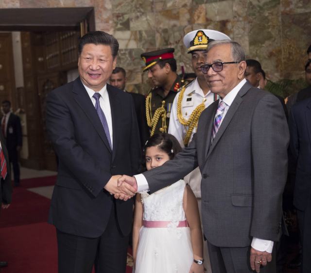 圖為10月14日,國家主席習(xí)近平抵達(dá)達(dá)卡,開始對孟加拉人民共和國進(jìn)行國事訪問。這是習(xí)近平接受孟加拉國兒童獻(xiàn)花。(新華社記者蘭紅光攝)