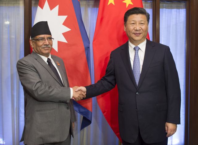 【普拉昌達(dá)盛邀習(xí)主席訪問尼泊爾】在印度果阿出席金磚國家領(lǐng)導(dǎo)人峰會期間,習(xí)近平主席會見了尼泊爾總理普拉昌達(dá)。普拉昌達(dá)對習(xí)主席說:“南亞國家您已經(jīng)基本走遍,相信尼泊爾也一定會成為您訪問的目的地?!绷?xí)主席說,中國和尼泊爾是山水相連的親密鄰邦,中方愿同尼方一道,對接發(fā)展戰(zhàn)略,深化各領(lǐng)域務(wù)實(shí)合作,打造中尼命運(yùn)共同體。(記者陳贄、霍小光)