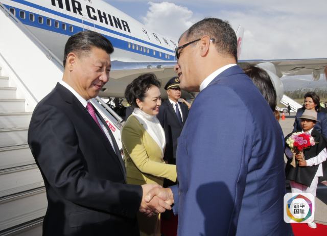 17日下午3時(shí)30分許,基多蘇克雷元帥國際機(jī)場,習(xí)近平主席的專機(jī)徐徐降落。早已等候在那里的厄瓜多爾總統(tǒng)科雷亞和夫人馬勒布迎上前去,同走下舷梯的習(xí)主席和夫人彭麗媛熱情握手。