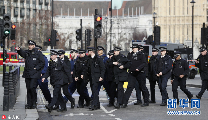 當(dāng)?shù)貢r(shí)間2017年3月22日,英國倫敦,英國威斯敏斯特議會大廈附近發(fā)生襲擊事件,威斯敏斯特橋上有車輛沖撞行人;另外有持刀歹徒攻擊議會大廈執(zhí)勤警察后被擊斃,報(bào)道稱多人受傷。襲擊發(fā)生后,議會大廈臨時(shí)關(guān)閉,英國議會下院的會議暫停。倫敦警方目前暫時(shí)將此事作為恐怖事件處理。據(jù)外媒報(bào)道,英國警方封閉了倫敦議會大廈周邊的街道。圖片來源:東方IC