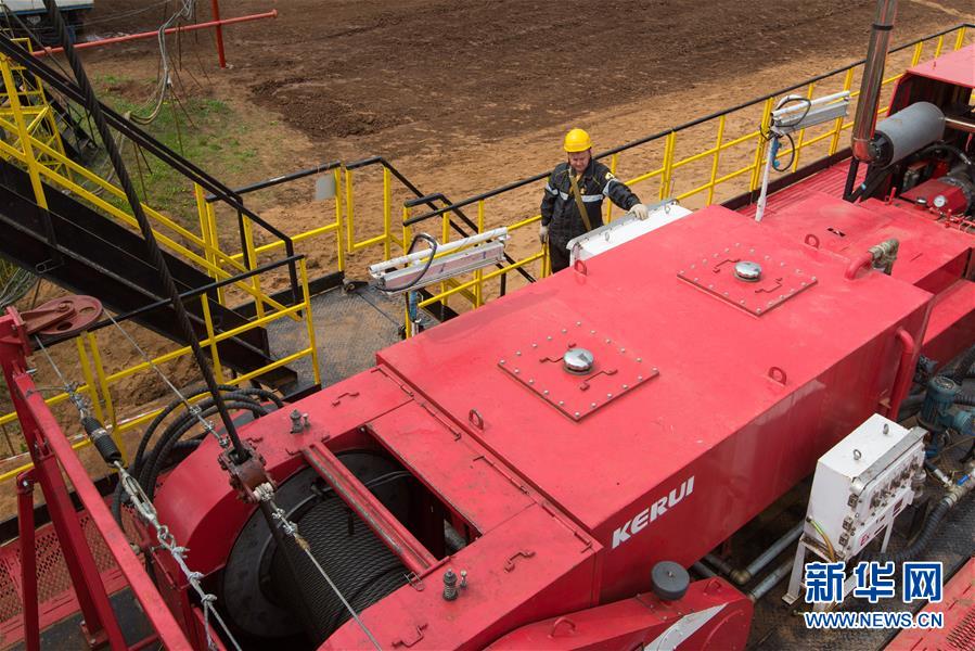 6月2日,在俄羅斯伊熱夫斯克,工人在UDM項(xiàng)目鉆井現(xiàn)場(chǎng)作業(yè)。新華社記者白雪騏攝