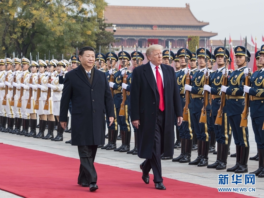 11月9日,國家主席習(xí)近平在北京人民大會堂東門外廣場舉行歡迎儀式,歡迎美利堅合眾國總統(tǒng)唐納德·特朗普對中國進行國事訪問。 新華社記者李濤 攝