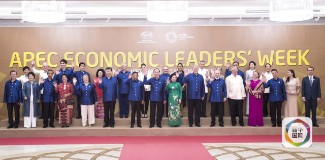 11月11日,亞太經(jīng)合組織第二十五次領(lǐng)導(dǎo)人非正式會(huì)議在越南峴港舉行。國(guó)家主席習(xí)近平出席并發(fā)表題為《攜手譜寫(xiě)亞太合作共贏新篇章》的重要講話(huà)。這是會(huì)議期間,國(guó)家主席習(xí)近平同其他亞太經(jīng)合組織成員經(jīng)濟(jì)體領(lǐng)導(dǎo)人、代表合影。新華社記者李濤攝