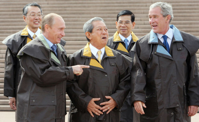 時任印尼總統(tǒng)蘇哈托贈送每位領導人一件巴提克——一種蠟染印花襯衣。