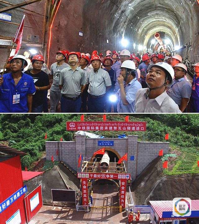 接片:上圖,10月12日,老中鐵路有限公司組織由200多人組成的大型觀摩團,觀摩中老鐵路努瓦山隧道施工;下圖,老撾烏多姆賽省孟賽縣中老鐵路努瓦山隧道外景。(新華社發(fā))