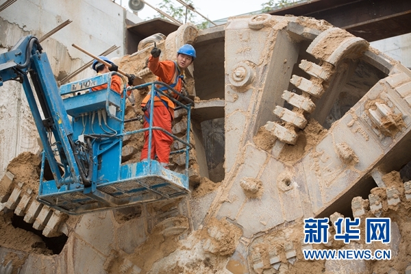 中國(guó)鐵建中土集團(tuán)實(shí)施的特拉維夫紅線(xiàn)輕軌首段盾構(gòu)隧道區(qū)間貫通現(xiàn)場(chǎng)。新華網(wǎng)發(fā)(郭昱 攝)