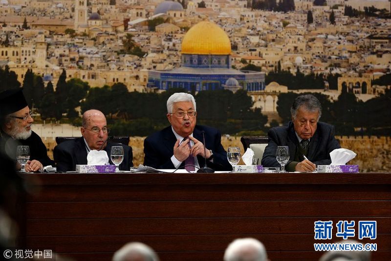 1月14日,約旦河西岸拉馬拉,巴勒斯坦總統(tǒng)阿巴斯在巴勒斯坦中央委員會會議上發(fā)表講話,并稱以色列已經(jīng)“終止”了奧斯陸協(xié)議。(圖片來源:視覺中國)