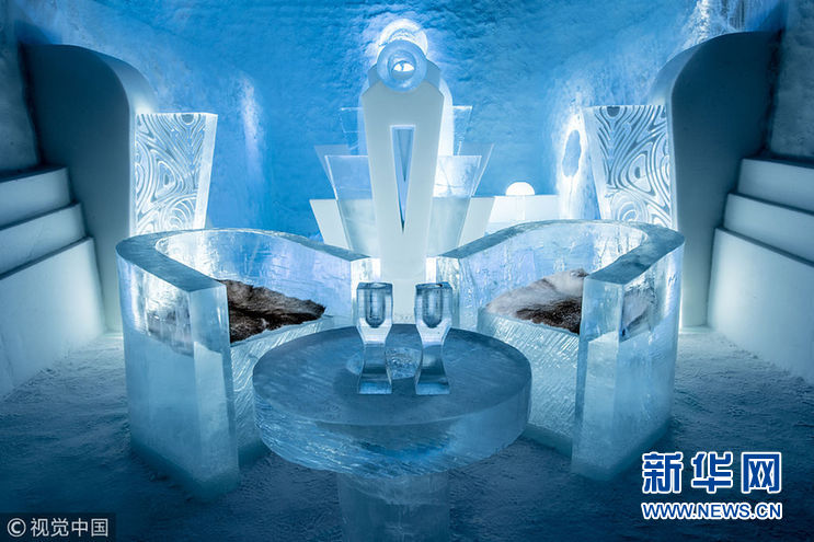 當(dāng)?shù)貢r間2018年1月12日,瑞典朱卡斯亞維村,瑞典冰雪酒店已在今年冬季重新開放,來自17個國家的36位藝術(shù)家參與了設(shè)計。自1989年以來,酒店每年都會在位于北極圈以北200公里處的瑞典朱卡斯亞維村莊重建,位置靠近托爾納河河畔。今年,藝術(shù)家們使用3萬立方米的冰雪建造了冰雪酒店,用500噸晶瑩剔透的天然冰制作了玻璃和冰雪酒吧。酒店擁有35個設(shè)計獨特的豪華套房、一個冰雕禮堂和一個全新的兒童樂園。在主廳里,1000個手工拋光的冰晶被制作成引人注目的吊燈。在冰雕禮堂中,有200個手工雕刻的植物裝點著墻壁。(圖片來源:視覺中國)