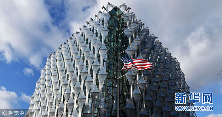 當(dāng)?shù)貢r(shí)間2018年1月16日,英國(guó)倫敦,位于倫敦的新美國(guó)駐英大使館16日開始正式對(duì)外開放?!。▓D片來(lái)源:視覺中國(guó))