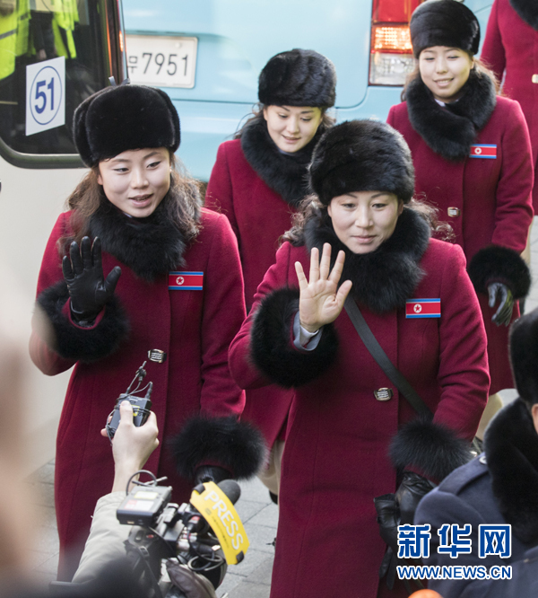 2月7日,朝鮮拉拉隊(duì)成員乘車(chē)到達(dá)韓國(guó)江原道麟蹄郡。當(dāng)日,參加平昌冬奧會(huì)的朝鮮拉拉隊(duì)、跆拳道示范團(tuán)、記者團(tuán)和民族奧林匹克委員會(huì)官員等一行280人經(jīng)由京義線(xiàn)陸路抵達(dá)韓國(guó)境內(nèi)。新華社發(fā)(李相浩攝)
