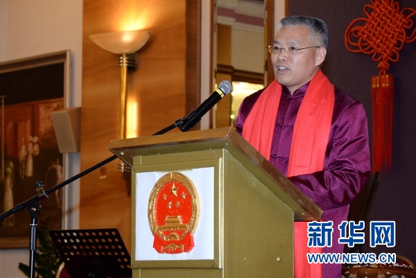 2月12日,中國駐克羅地亞大使胡兆明在薩格勒布出席中國春節(jié)慶祝晚會時致辭。新華網(wǎng)發(fā)(高磊攝)