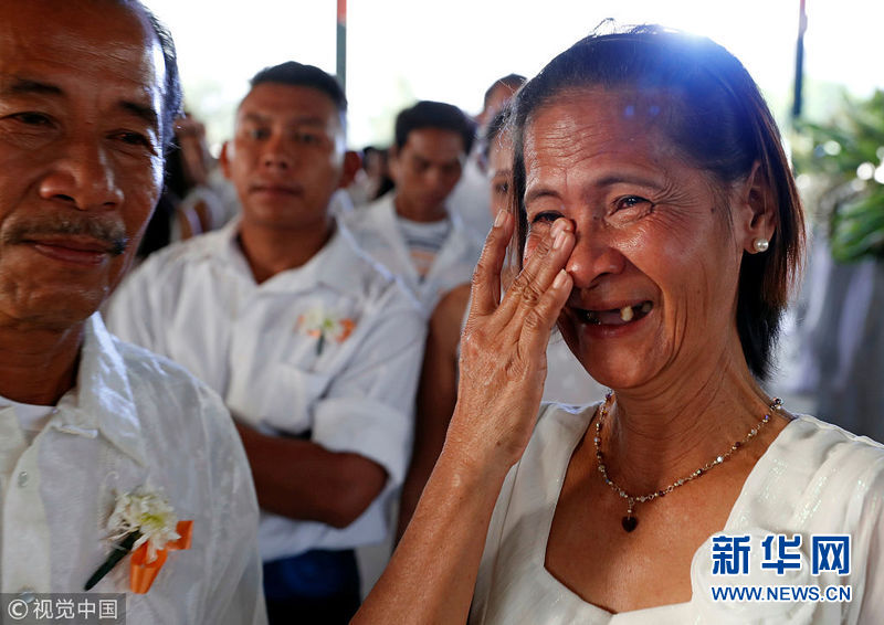 2月13日,菲律賓蘇比克,情人節(jié)前夕,當(dāng)?shù)嘏e辦集體婚禮。(圖片來源:視覺中國)
