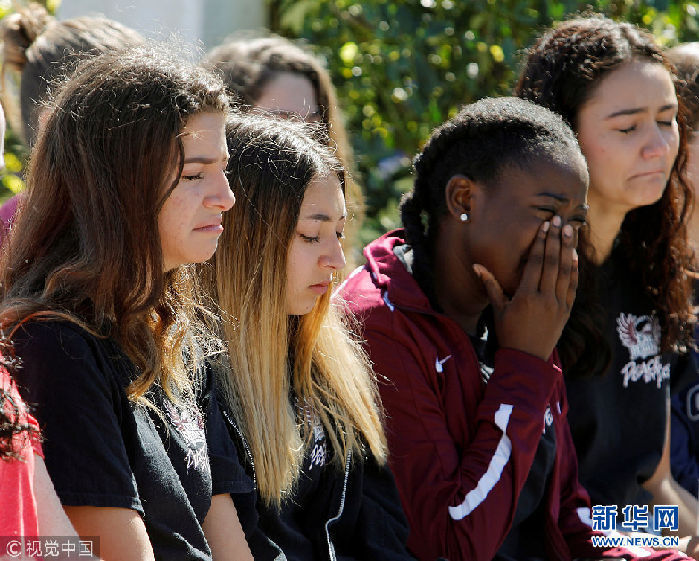 當(dāng)?shù)貢r(shí)間2018年2月15日,美國(guó)佛羅里達(dá)州波姆龐帕諾灘,民眾悼念槍擊案遇難者。當(dāng)?shù)貢r(shí)間14日下午2點(diǎn)25分左右,美國(guó)佛羅里達(dá)州南部帕克蘭一所高中發(fā)生槍擊案,目前已致至少17人死亡,多人受傷。(圖片來(lái)源:視覺中國(guó))